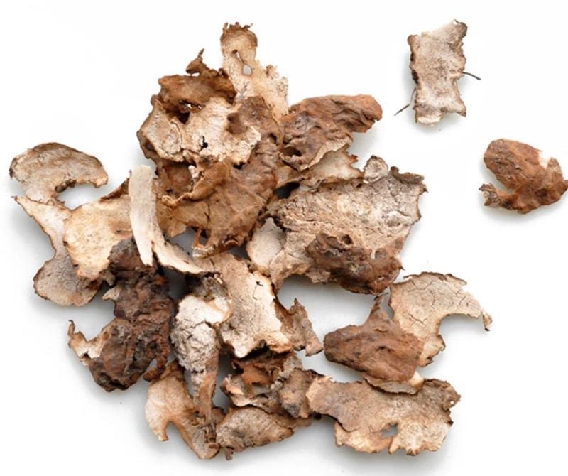 茯苓菌核外表削下來的黑色外皮,曬乾後即為茯苓皮。