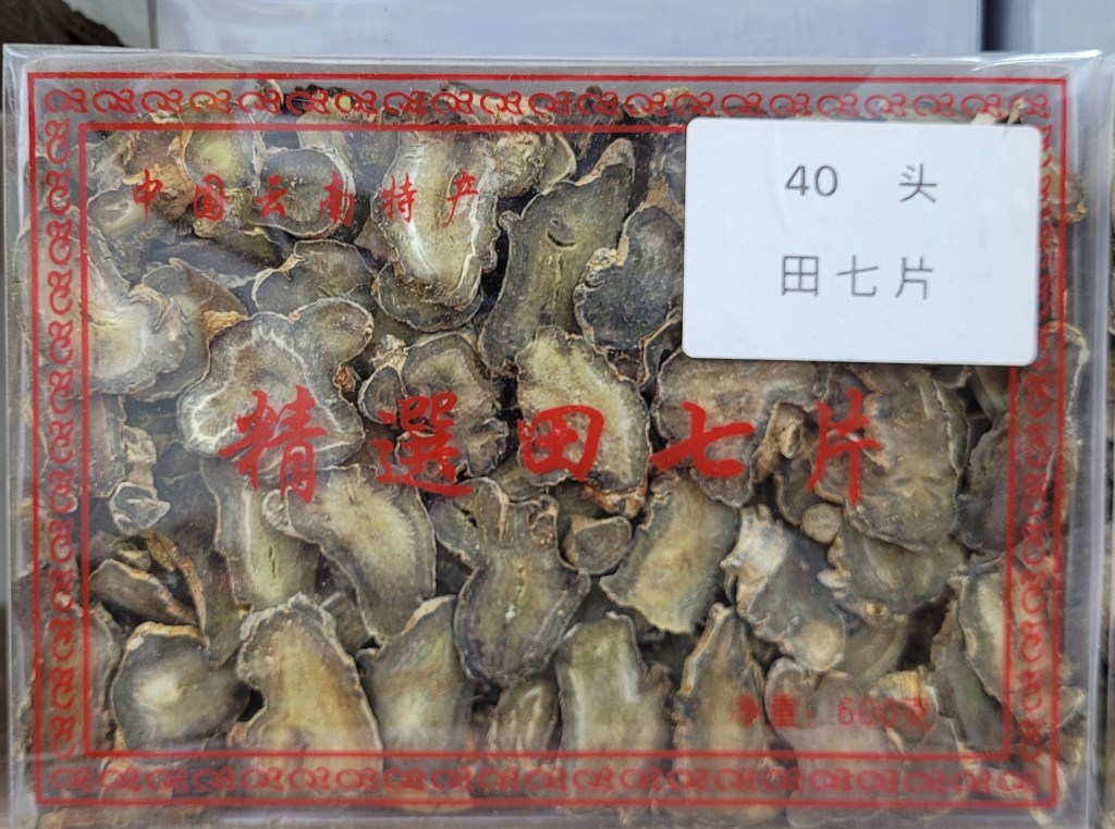 三七又名田七,也叫金不換,是五加科植物三七的乾燥根及根莖。主產于雲南、廣西、江西、四川等地。秋季花開前採挖,洗淨,曬乾。市面見到的三七藥材,通常是主根,其他支根、蘆頭已被剪走。三七又名田七,也叫金不換。